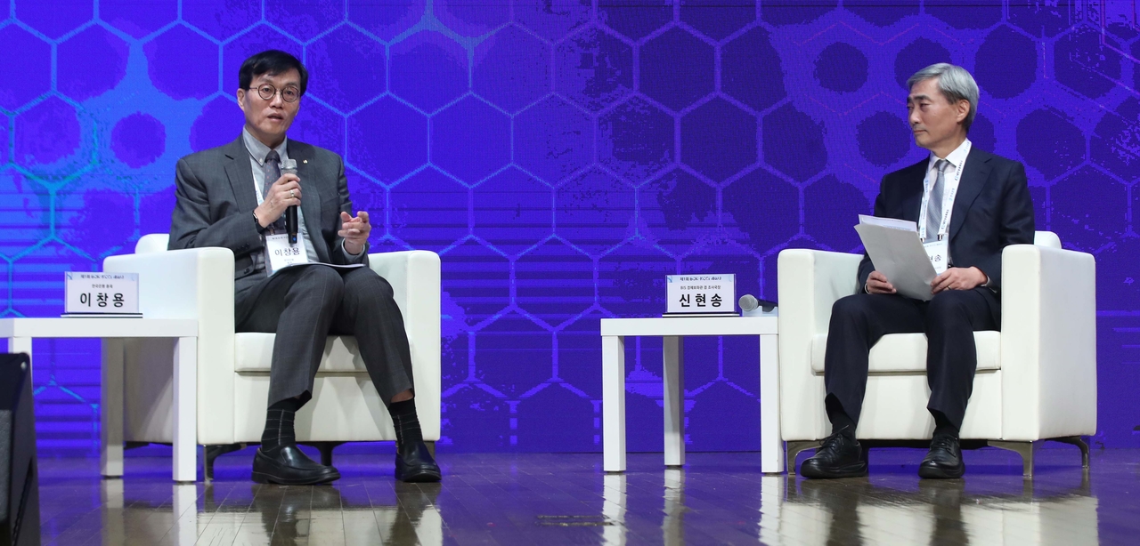 | 이창용 한국은행 총재가 2024년 12월 17일 오전 서울 중구 한국은행에서 열린 국제결제은행(BIS)-금융위원회(FSC)-한국은행(BOK) 공동개최 ‘AI, 금융, 중앙은행 : 기회, 도전과제 및 정책적 대응’ 콘퍼런스에서 김소영 금융위원회 부위원장과 신현송 BIS 조사국장과 대화를 나누고 있다. [뉴시스] |