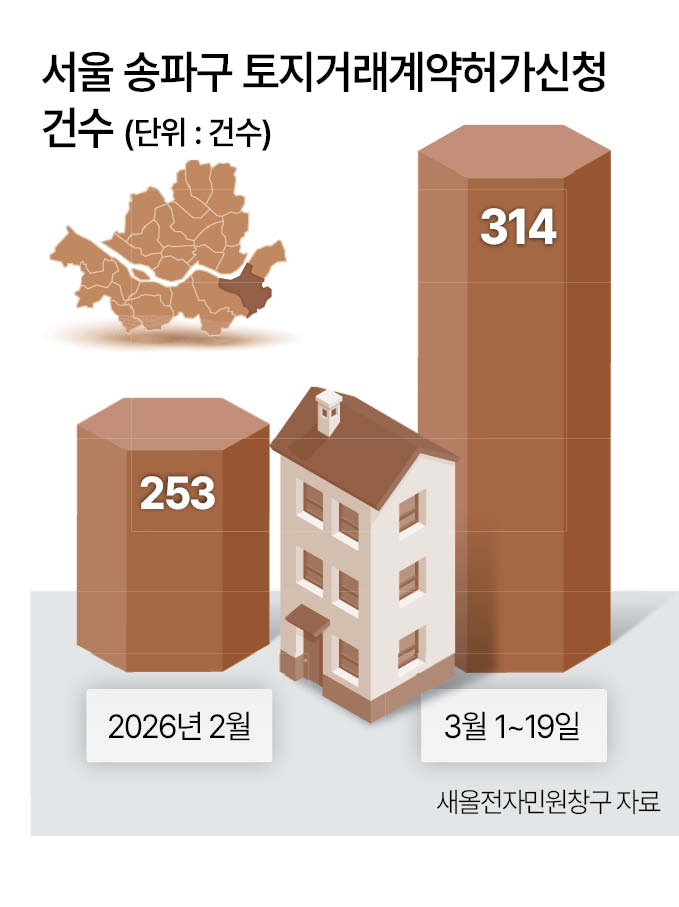 송파 토허신청 314건, 2월보다 24%↑