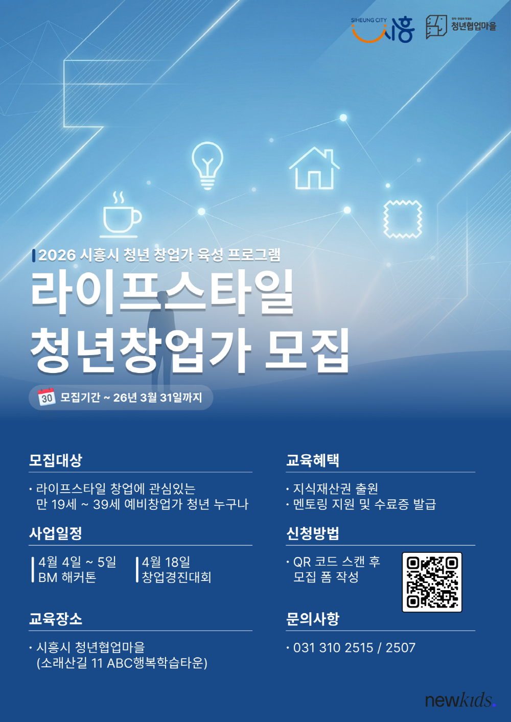 [헤럴드경제=박준환 기자]시흥시가 ‘2026 청년 창업가 육성 프로그램’의 일환으로 라이프스타일 분야 예비 청년창업가를 대상으로 실전형 창업 프로그램인 ‘창업 해커톤’과 ‘창업 경진대회’를 운영, 3월 31일까지 참가자 30명을 모집한다.