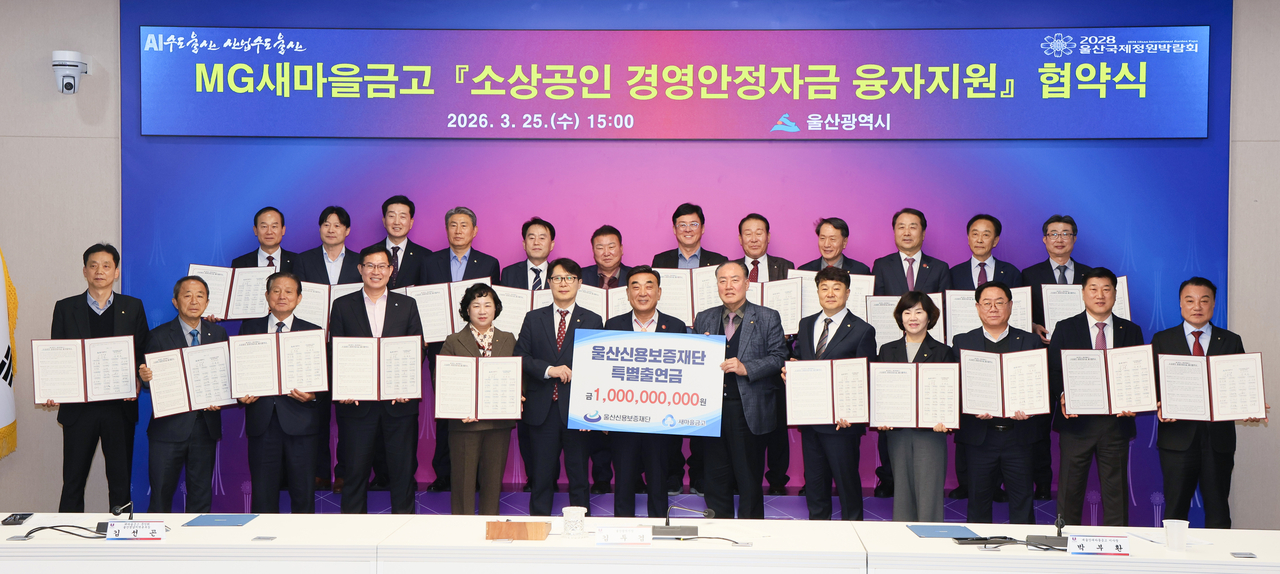 울산시는 25일 울산시청 본관 2층 대회의실에서 새마을금고와 ‘소상공인 경영안정자금 융자지원 협약’을 체결하고 소상공인 경영안정자금 취급 금융기관을 기존 10곳에서 11곳으로 늘려 금융 접근성을 높였다.