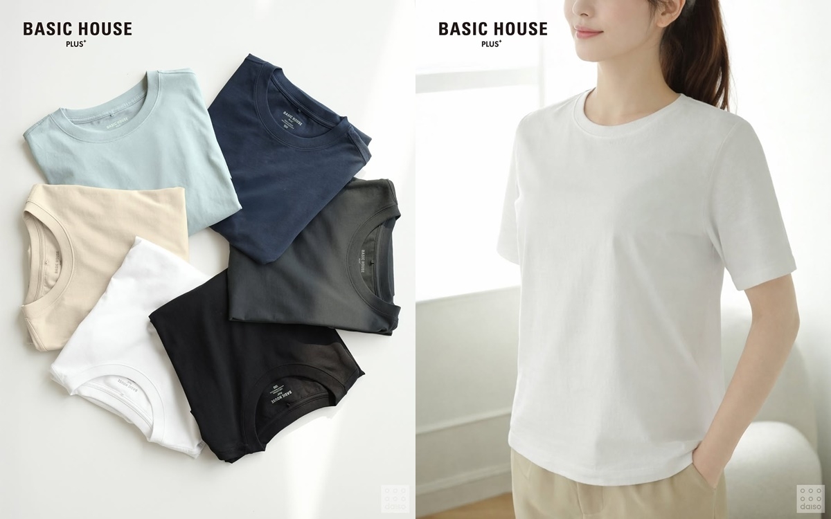 | ‘베이직하우스 플러스(BASIC HOUSE PLUS+)’ 티셔츠 [다이소] |