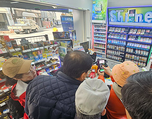 | 25일 서울 광진구 자양동의 GS25 편의점 노유타운점에서 ‘시니어 도보 배달원(우친)’ 신청자들이 주문 물품을 픽업하는 현장 실습을 하고 있다. [김진 기자] |
