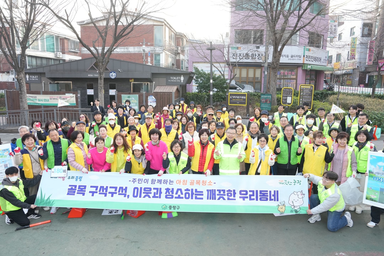 | 류경기 중랑구청장과 함께 청소에 나선 중랑구민들 |