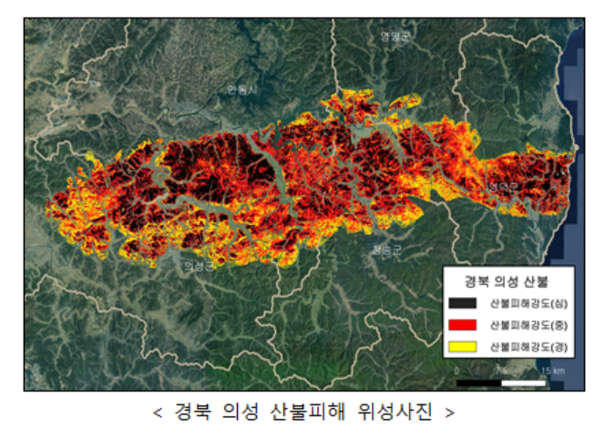 | 경북 의성 산불피해 위성 사진 [기상청 제공] |