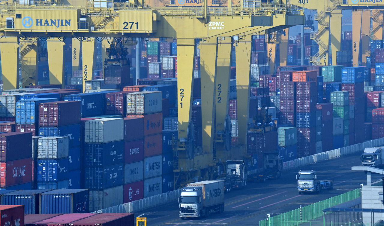 | 12일 오전 인천 연수구 인천신항 컨테이너 터미널에 선적 대기 중인 컨테이너가 가득 쌓여있다. [헤럴드DB] |