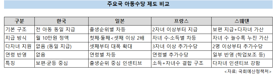 日·佛·스웨덴은 다자녀일수록 수당 확대…출산 유인 설계 뚜렷