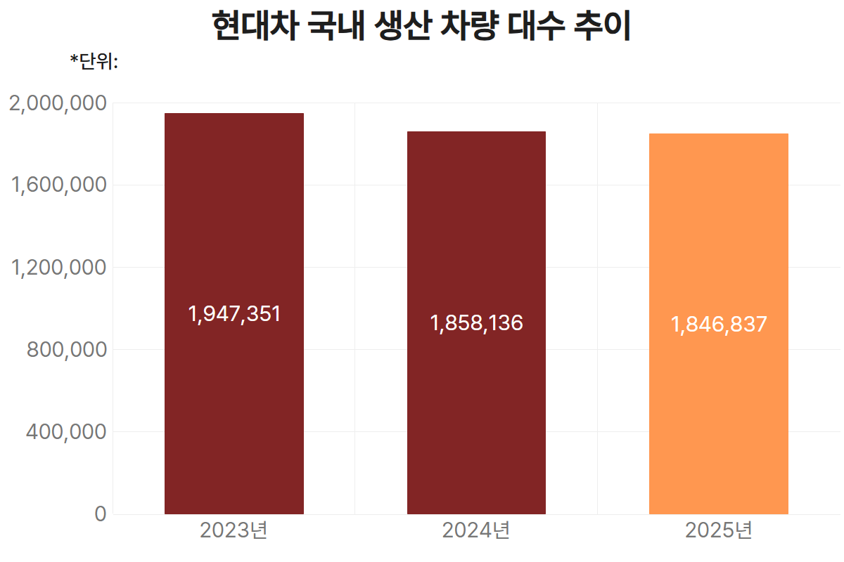 [헤럴드경제=정경수 기자] 현대자동차그룹이 글로벌 판매량 3위, 영업이익 2위라는 양적 성장을 이어가고 있지만, 국내 사업장의 수익성과 생산성을 보여주는 질적 지표에는 경고등이 켜지는 모양새다. 현대차 본사 직원 1명이 벌어들이는 이익이 평균 연봉의 절반에도 못 미치는 ‘수익성 역전’ 현상이 나타나면서, 다가올 노사 협상의 핵심 쟁점으로 ‘생산성 제고’가 부상하고 있다.