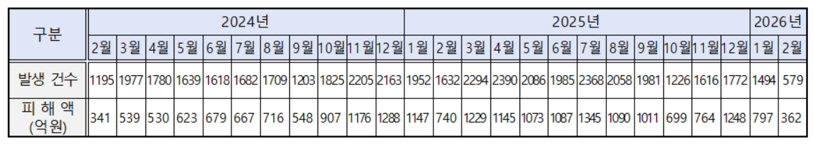 | 경찰청 전기통신금융사기 통합대응단이 분석한 보이스피싱 범죄 발생 및 피해액 통계 [경찰청 제공] |