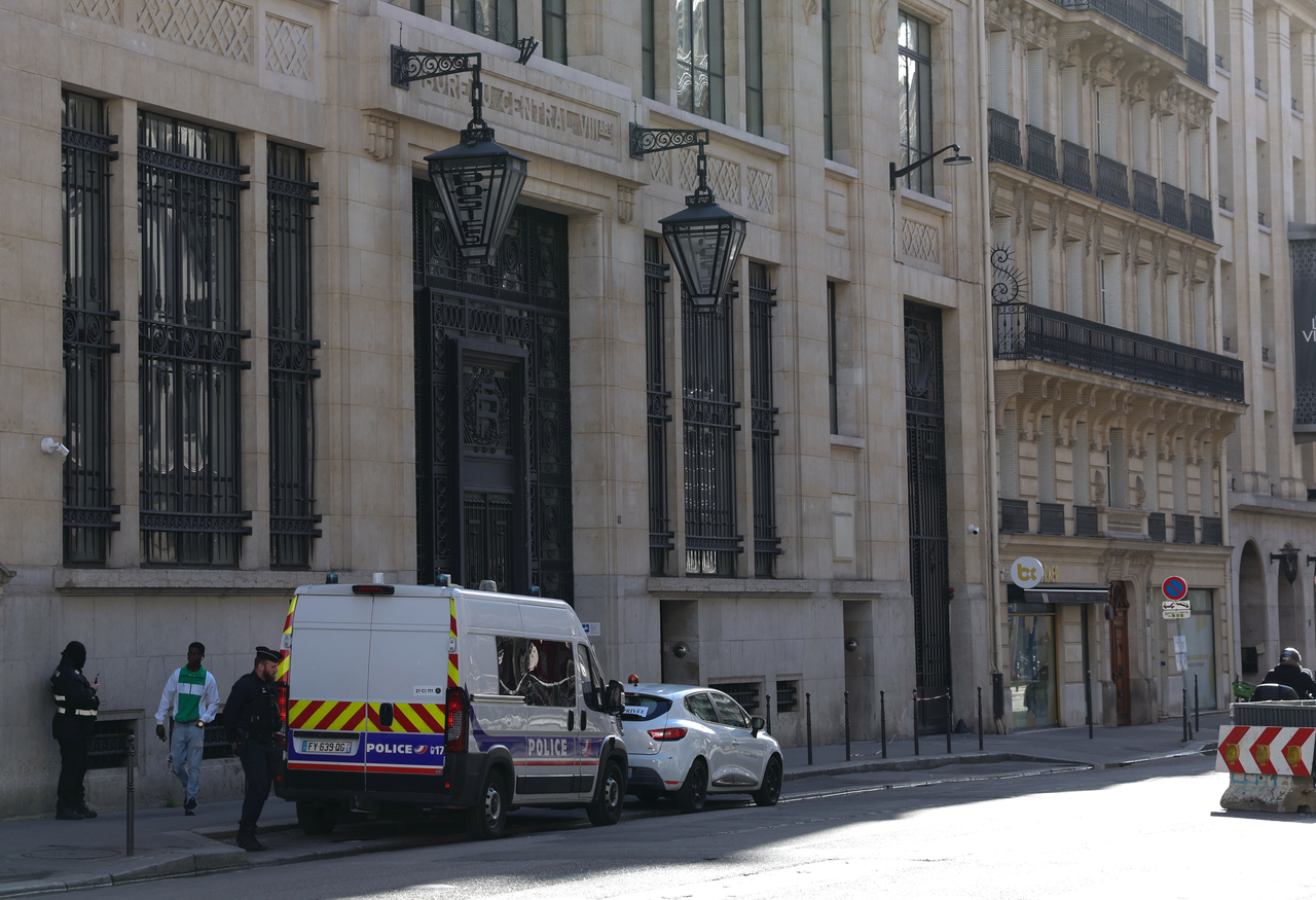 | 28일, 프랑스 파리의 뱅크 오브 아메리카 지점 근처에서 경찰관과 경찰차가 서 있다.[신화통신] |