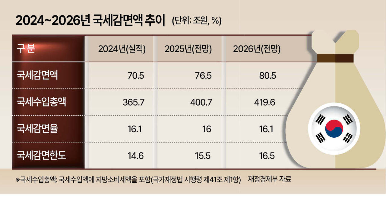 재정건전성 관리도 강화된다. 국세감면액은 2025년 76조5000억원에서 2026년 80조5000억원으로 늘어날 것으로 전망된다. 정부는 감면 신설·연장 시 세수 보완대책 제출을 의무화하고, 부처별로 감면 규모를 관리하는 총량관리 체계를 강화하기로 했다.