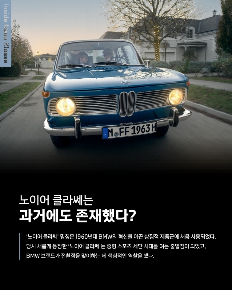 이 개념은 1960년대 BMW의 전환점을 이끈 중형 스포츠 세단 라인업에서 처음 등장했다. 당시 ‘BMW 1500’ 등을 중심으로 새로운 세그먼트를 개척하며 현재 3·5시리즈의 기반이 됐다.