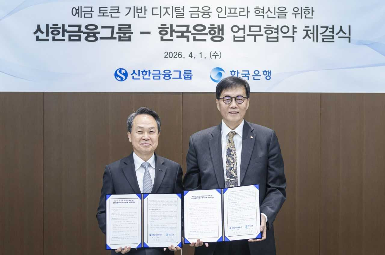 신한금융그룹은 1일 서울 중구 한국은행 본관에서 진옥동 회장과 이창용 총재가 참석한 가운데 ‘예금 토큰 기반 디지털 금융 인프라 혁신을 위한 업무협약(MOU)’을 체결했다. 이번 협약은 한국은행이 추진 중인 2차 예금 토큰 실거래 시범사업 ‘프로젝트 한강’의 일환이다.
