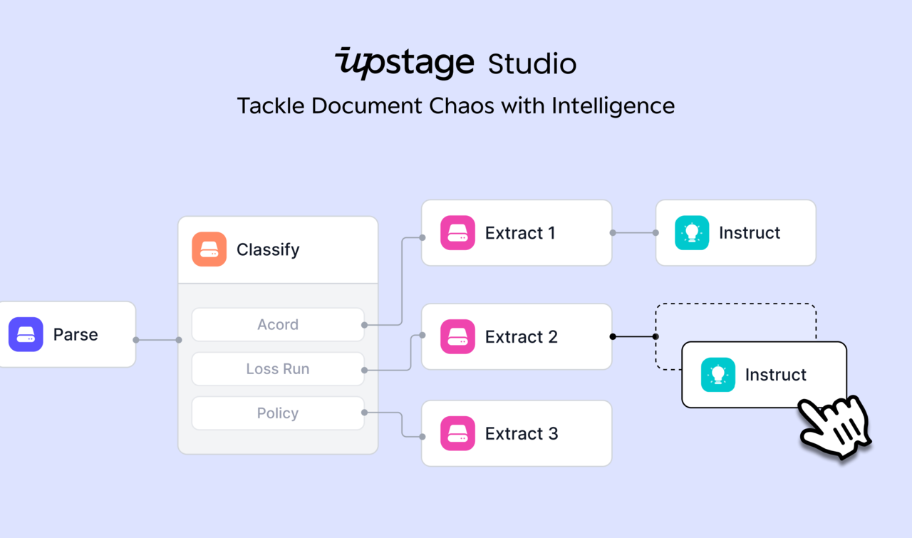 업스테이지 스튜디오는 업스테이지가 자체 개발한 문서 처리 AI 핵심 기술인 파싱(Parsing)·문서 분류(Classify)·정보 추출(Extract) 등을 단일 플랫폼에 집약한 차세대 AI 솔루션이다.