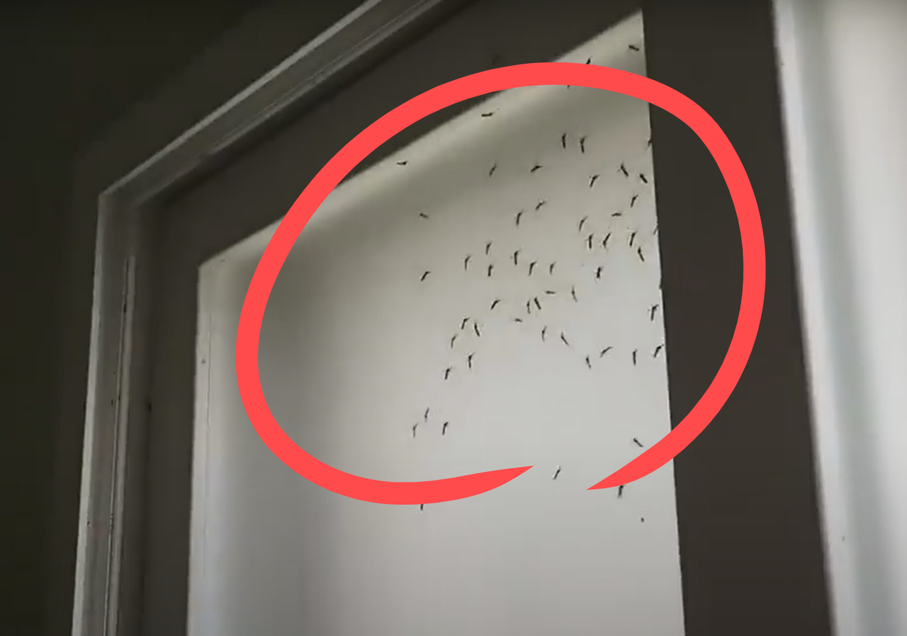 | 창문에 모기떼가 붙어 있다.[X(구 트위터) 갈무리] |