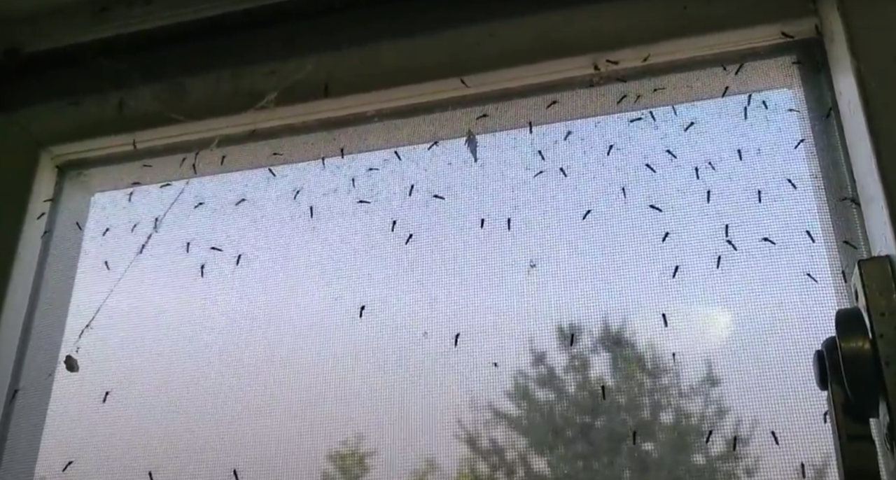 | 방충망에 모기떼가 붙어 있다.[X(구 트위터) 갈무리] |