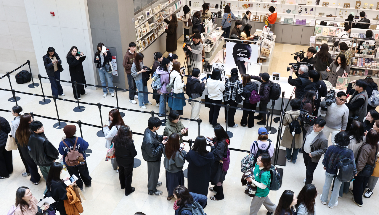 | 20일 서울 용산구 국립중앙박물관 상품전시관에서 팬들이 국립박물관문화재단과 하이브가 그룹 방탄소년단(BTS)의 정규 5집 ‘아리랑’(ARIRANG) 컴백을 기념해 출시한 협업상품을 구입하기 위해 줄을 서고 있다. [연합] |