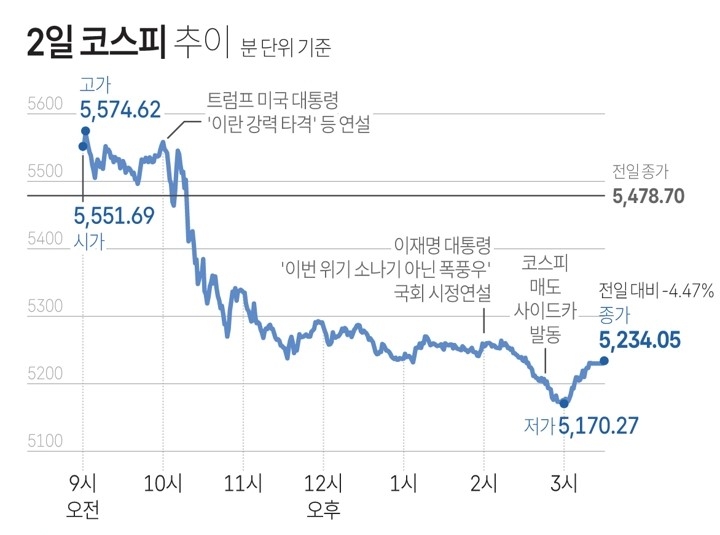하지만 이날 트럼프 대통령의 연설에서 종전이나 협상에 대한 새로운 내용 없이 이란을 앞으로 2~3주간 오히려 더 강하게 타격할 것이라고 말하자 투자심리가 급격히 위축됐다.
