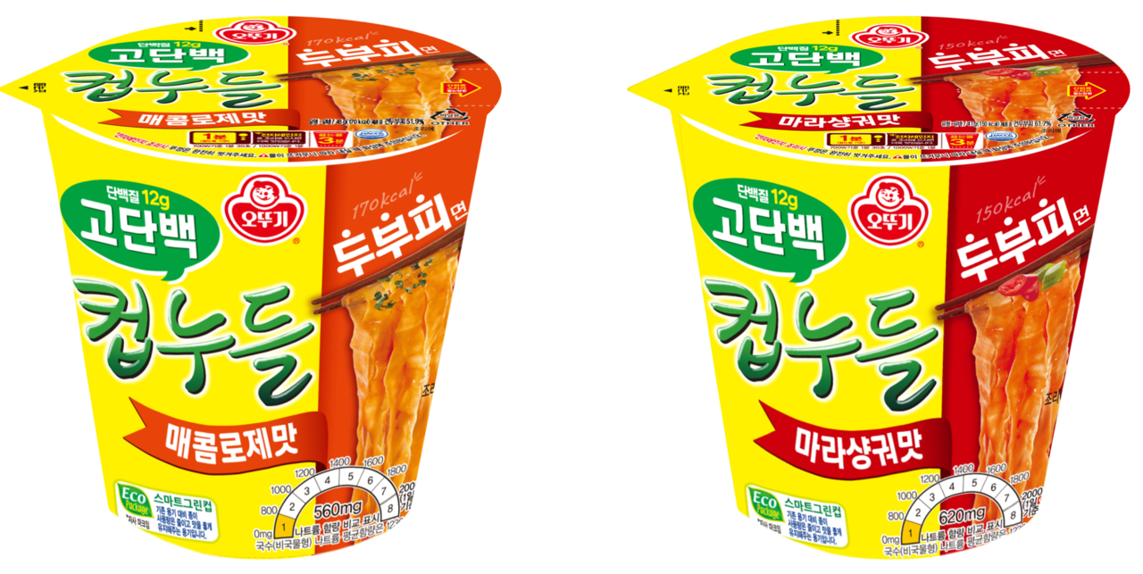 지난해 7월 출시된 고단백 컵누들 2종은 두부피면을 사용해 단백질 12g을 함유하면서 100㎉대 열량을 구현했다. 출시 이후 누적 판매량은 220만개를 돌파했다. 오뚜기는 4월부터 단맛 조절과 패키지 디자인 개선을 적용한 리뉴얼 제품을 선보인다.