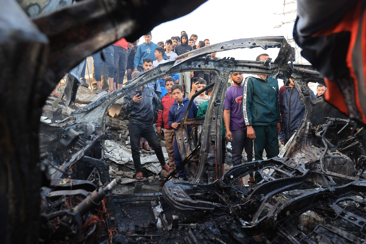 | 지난 4일(현지시간) 가자 지구 중부의 마가지 팔레스타인 난민 캠프에서 난민들이 이스라엘의 공습을 받은 차량을 살펴보고 있다. 지난해 10월 10일 미국의 중재로 이스라엘과 하마스 간 휴전협정이 체결됐으나, 교전이 빈번히 발생하고 있다. [AFP] |
