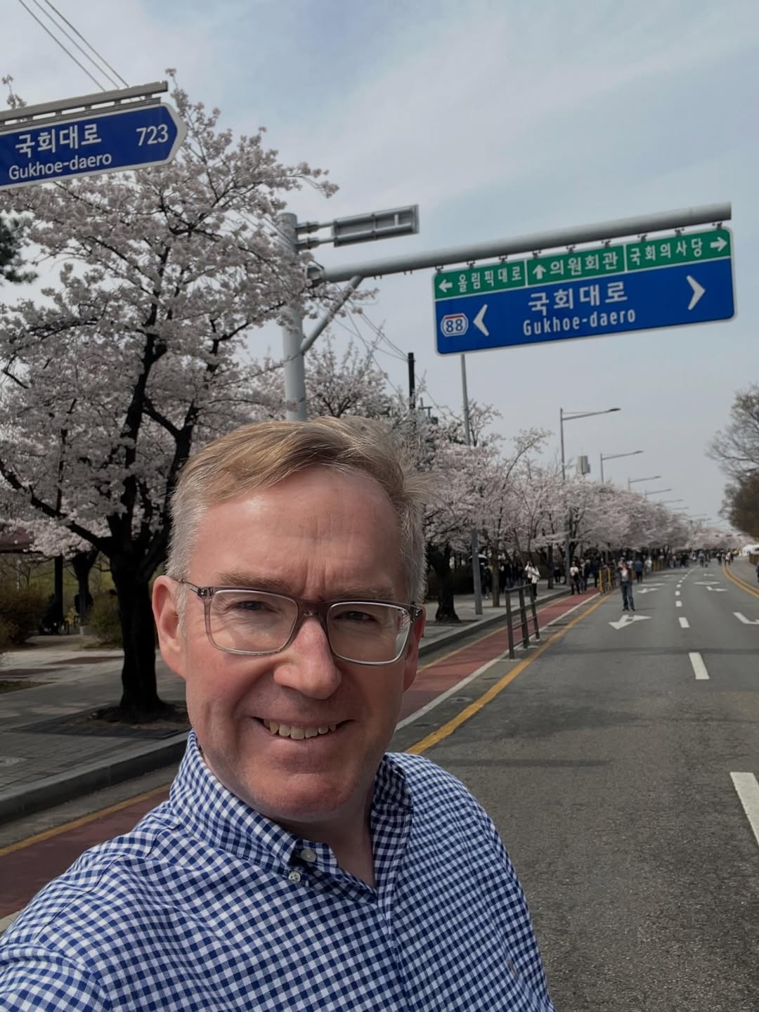 콜린 크룩스 대사는 지난 4일 자신의 사회관계망서비스(SNS)에 유창한 한국어로 “오늘 여의도 와보니까 벚꽃이 역시 한창”이라며 “이번 주말 벚꽃 보러 어디 가십니까”라고 전했다.