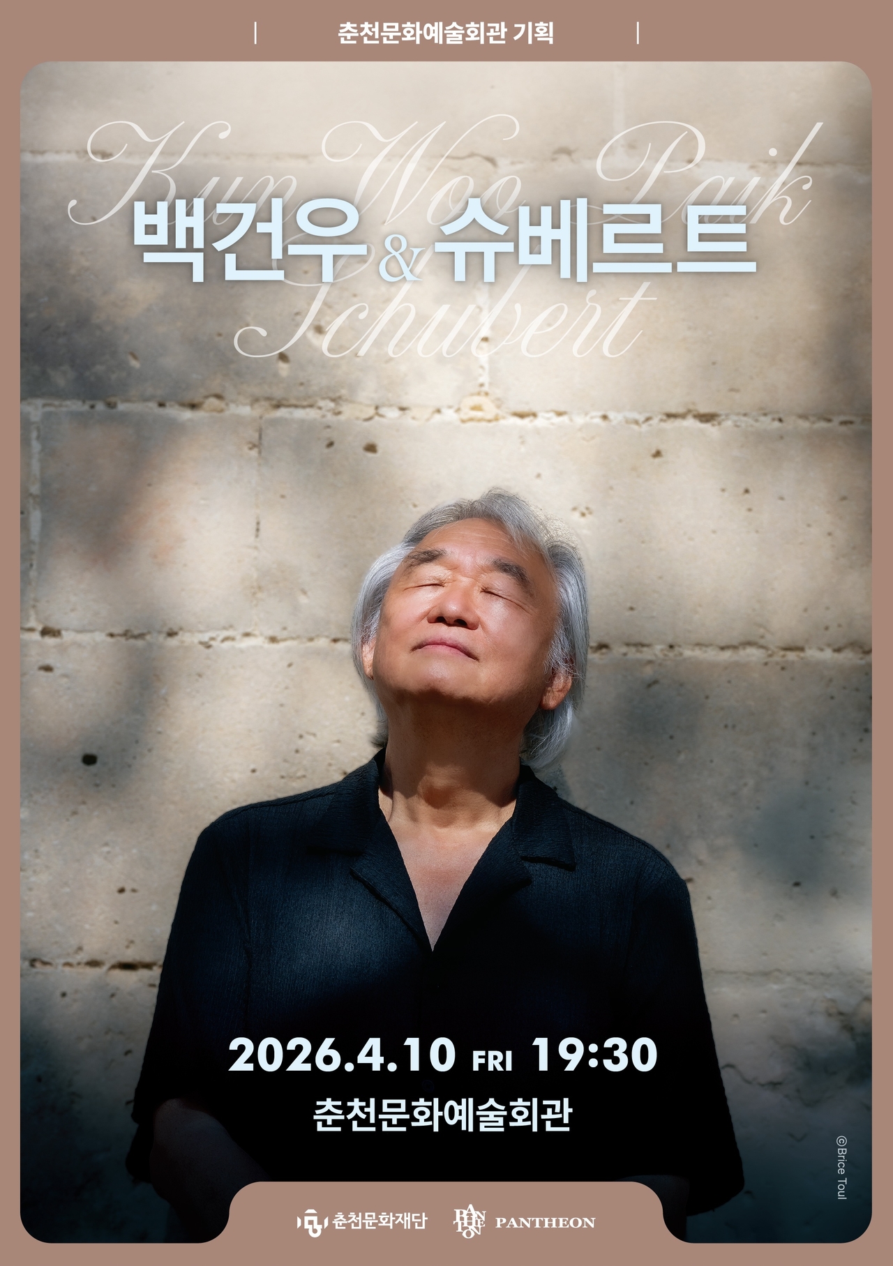 춘천문화재단은 그의 80세 생일 한달 전, 오는 10일 ‘백건우&슈베르트’를 춘천문화예술회관에서 개최한다.