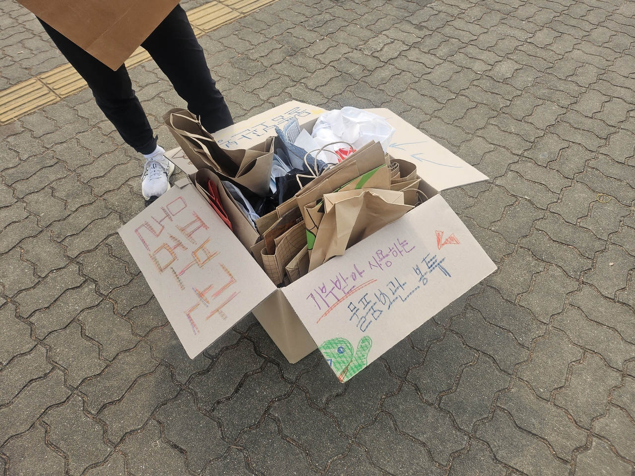물품 보관소에서도 다른 점이 눈에 띄었다. 주최 측은 이날 물품 보관을 위해 흔히 쓰는 비닐백 대신 재사용 종이봉투를 활용했다. 참가자들 또한 익숙한 듯이 제각기 다른 모양의 종이봉투를 받아 물건을 담았다. 하지만 참가자들의 불만이 나오거나, 보관에 차질을 빚는 경우는 없었다.