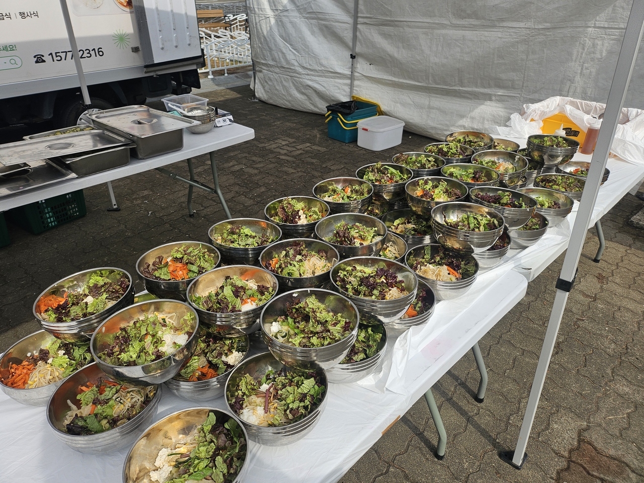 | 5일 오전 서울 마포 월드컵공원 평화광장에서 열린 ‘2026 무해런’에서 제공된 비건 비빔밥. 김광우 기자. |