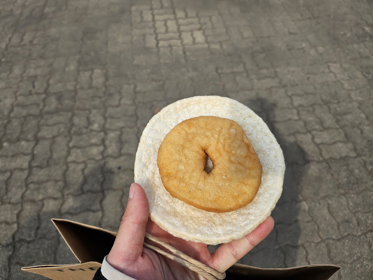 | 5일 오전 서울 마포 월드컵공원 평화광장에서 열린 ‘2026 무해런’에서 제공된 비건 도넛. 김광우 기자. |