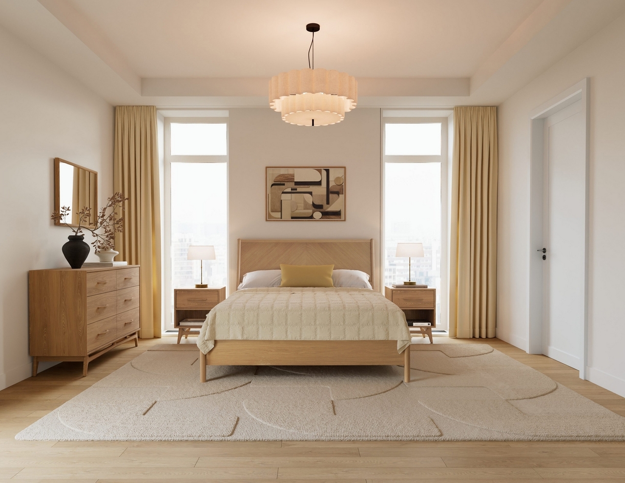 헤드보드는 취향에 따라 선택할 수 있도록 두 가지 타입으로 구성했다. 서랍장과 협탁 등 다양한 수납 가구도 함께 선보여 침실 규모와 사용 방식에 맞춰 자유롭게 조합할 수 있도록 했다.