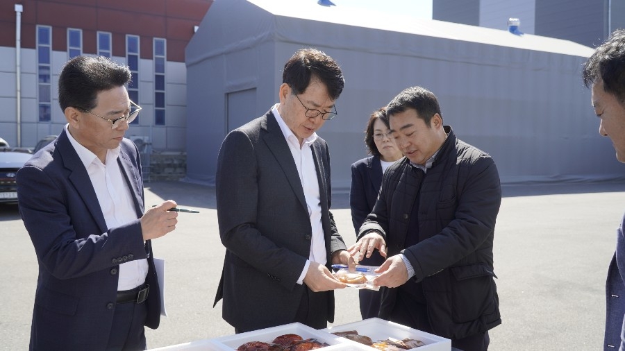| 농식품부와 식품진흥원이 중동전쟁으로 힘든 식품기업 지원을 위해 친환경 포장재 전환 지원과 물류 공동배송 시스템을 도입한다. 8일 김정욱 농식품부 농산업혁신정책실장(왼쪽에서 두번째)이 전북 익산 소재 국가식품클러스터를 방문해 현장의 목소리를 직접 청취하고 있다. |