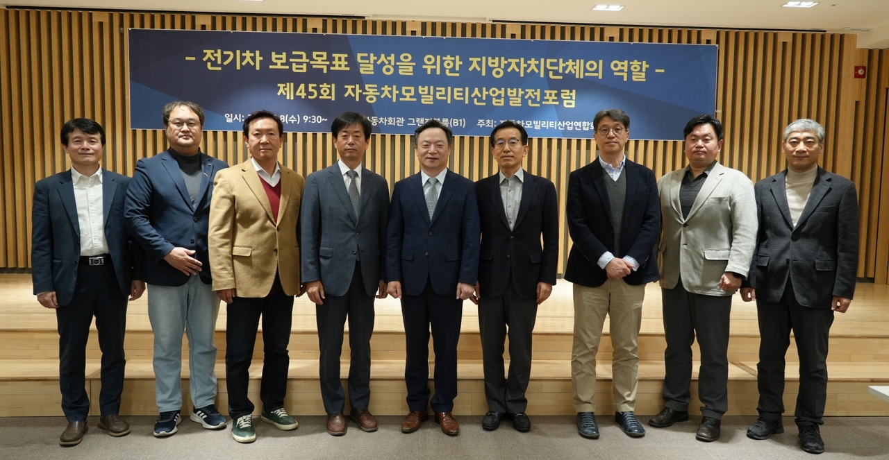 | 제45회 자동차모빌리티산업발전포럼 참석자들이 기념 촬영을 하고 있다. [자동차모빌리티산업연합회 제공] |
