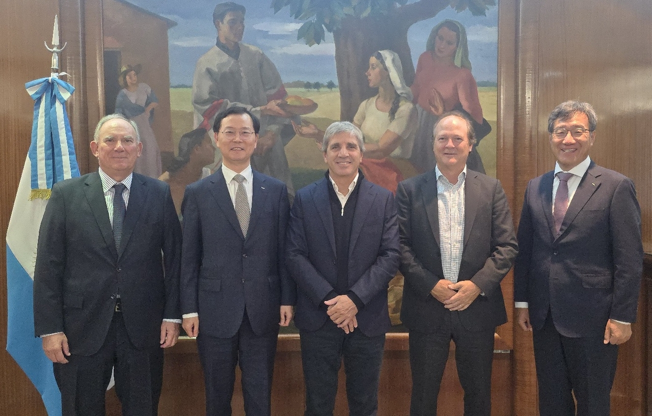 | 7일(현지시간) 아르헨티나 부에노스아이레스에서 이주태(왼쪽 두번째) 포스코홀딩스 대표이사 사장이 루이스 카푸토 연방 경제부 장관과 면담을 하고 있다. [포스코홀딩스 제공] |