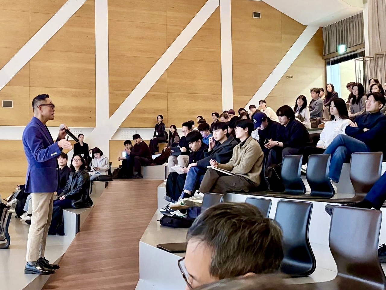 | 정태영 현대카드 부회장이 서울대학교 건축학과 공개강연에 연사로 참여해 강연하는 모습. [정태영 부회장 페이스북] |