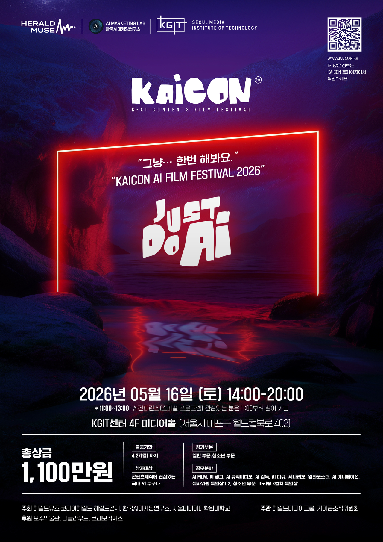 ‘카이콘 2026(KaiCON : K-ai Contents Film Festival 2026)’은 즉흥과 무한상상, 한계와 영역을 허문 휴머니티 창의력으로 무장한 AI크리에이터를 육성하기 위한 AI영화제로, 슬로건으로 ‘Just Do AI’를 내걸었다. “그냥해”, “맘대로 해보세요”라는 뜻으로, 거부할 새 없이 우리 생활 속으로 파고든 AI영화를 이젠 우리 모두 ‘내 손에 활성화’를 하자는 의미를 담았다. 이런 키워드로 상영과 시상식이 이뤄지는 카이콘 영화제 프로그램 중 하나로 서울미디어대학원대학교 측이 AI 컨퍼런스 자리를 마련한 것이다.