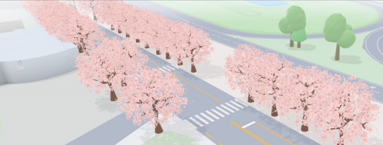 | 현대오토에버의 차세대 모빌리티 플랫폼 ‘루토’ 속 벚꽃 3D 모델링 화면 [현대오토에버 제공] |