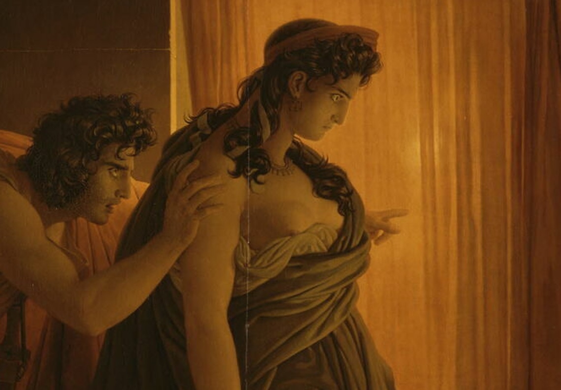 | 피에르-나르시스 게랭, 아가멤논을 죽이기 전 망설이는 클리타임네스트라, 1817, 캔버스에 유채, 76x84cm, 루브르 박물관 |