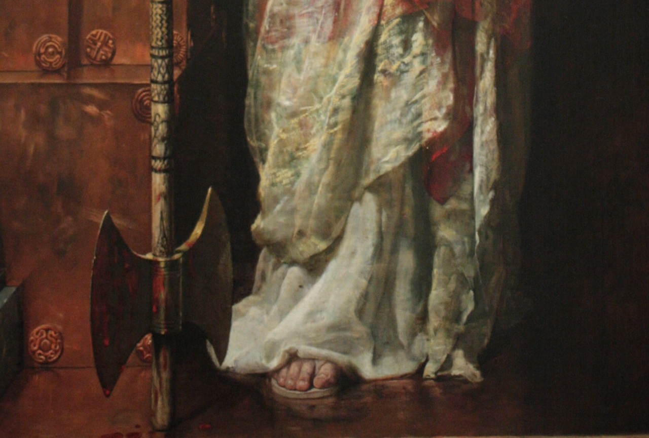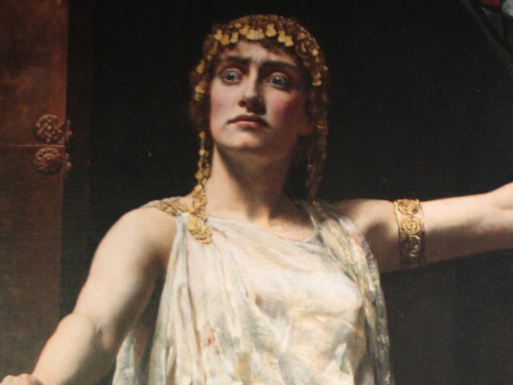 | 존 콜리어, 살인 후 클리타임네스트라(일부 확대), 1882, 캔버스에 유채, 239x174cm, 길드홀 아트 갤러리 |