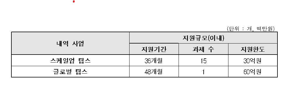 스케일업 팁스는 최근 2년 내 10억원 이상 투자 유치 기업을 대상으로 하며, 선정 시 최대 3년간 30억원의 R&D 자금을 지원한다.