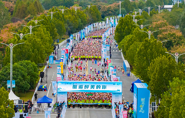| 지난해 10월 19일 중국 장쑤성 쑤첸시에서 열린 한 마라톤 대회. [게티이미지] |