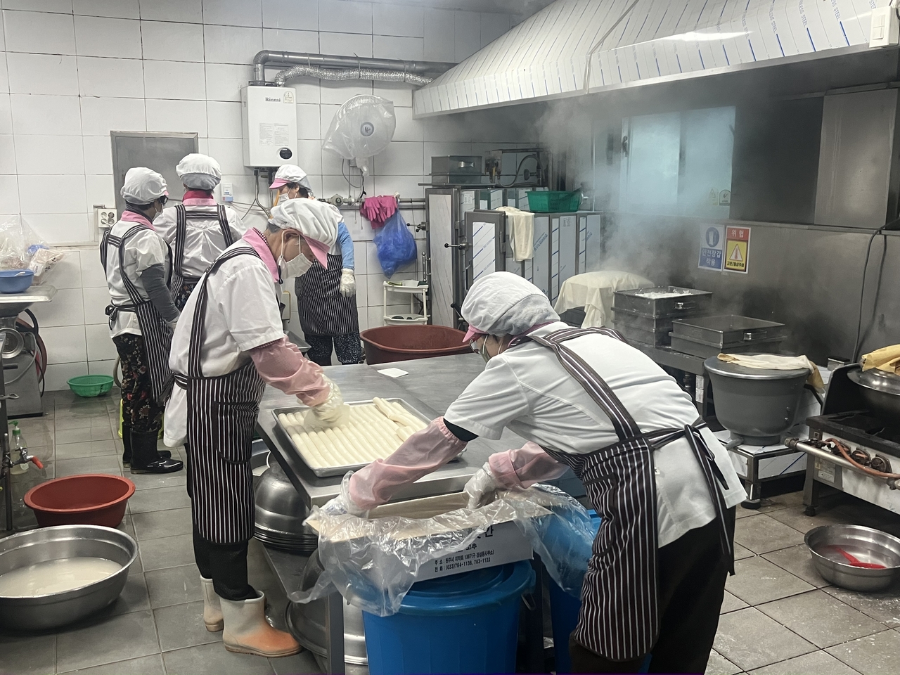 | 10일 강원특별자치도 원주시 관설도 ‘동네방앗간’에서 노인일자리 참여자들이 떡을 만들기 위해 분주히 움직이고 있다.[한국노인인력개발원 제공] |