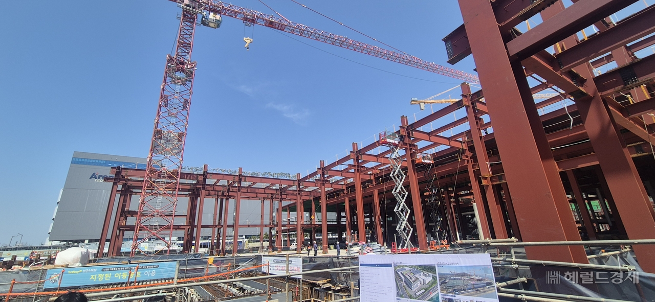 | 인천 영종도 운북지구 제2 엔진 테스트 셀(ETC) 인근에서 기존 부천 공장 기능을 통합하는 신(新) 엔진 정비 공장 건설이 진행되고 있다. 정경수 기자 |