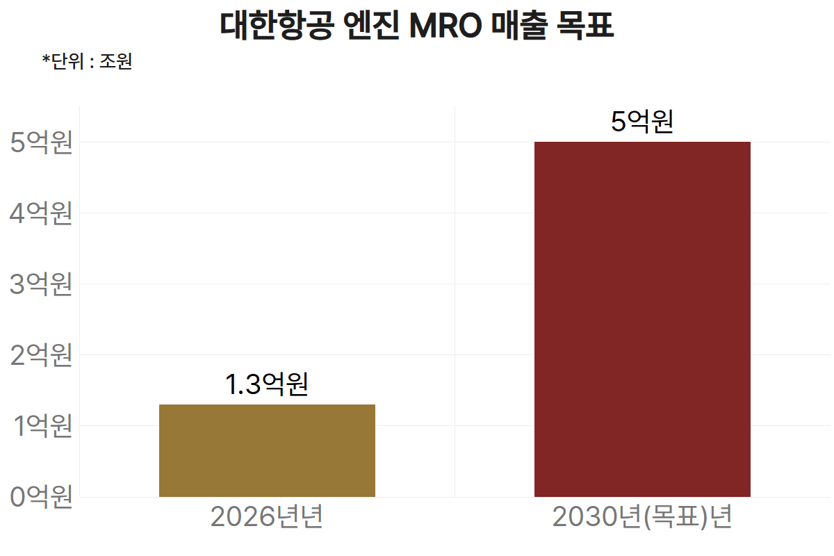 [헤럴드경제=정경수 기자] 대한항공이 항공기 엔진 정비(MRO) 사업을 미래 성장 축으로 키운다. 올해 1조3000억원 수준인 엔진 정비 매출을 2030년 5조원 이상으로 확대하고, 정비 물량도 연간 5배 이상으로 늘린다는 목표다. 통합 항공사 출범을 앞두고 자체 정비 역량을 강화하는 동시에 외부 수주를 본격 확대해 엔진 MRO 사업을 본격적인 수익 사업으로 육성하겠다는 전략이다.