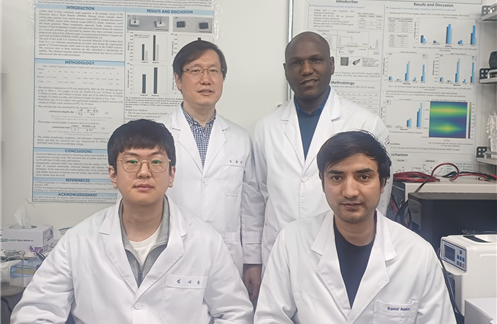 | 노창현(뒷줄 왼쪽부터) UST 교수, 미구타 파우스틴 응굴리미 UST 박사과정생, 카말 아스가르 UST 박사과정생, 김시온 UST 통합과정생.[UST 제공] |