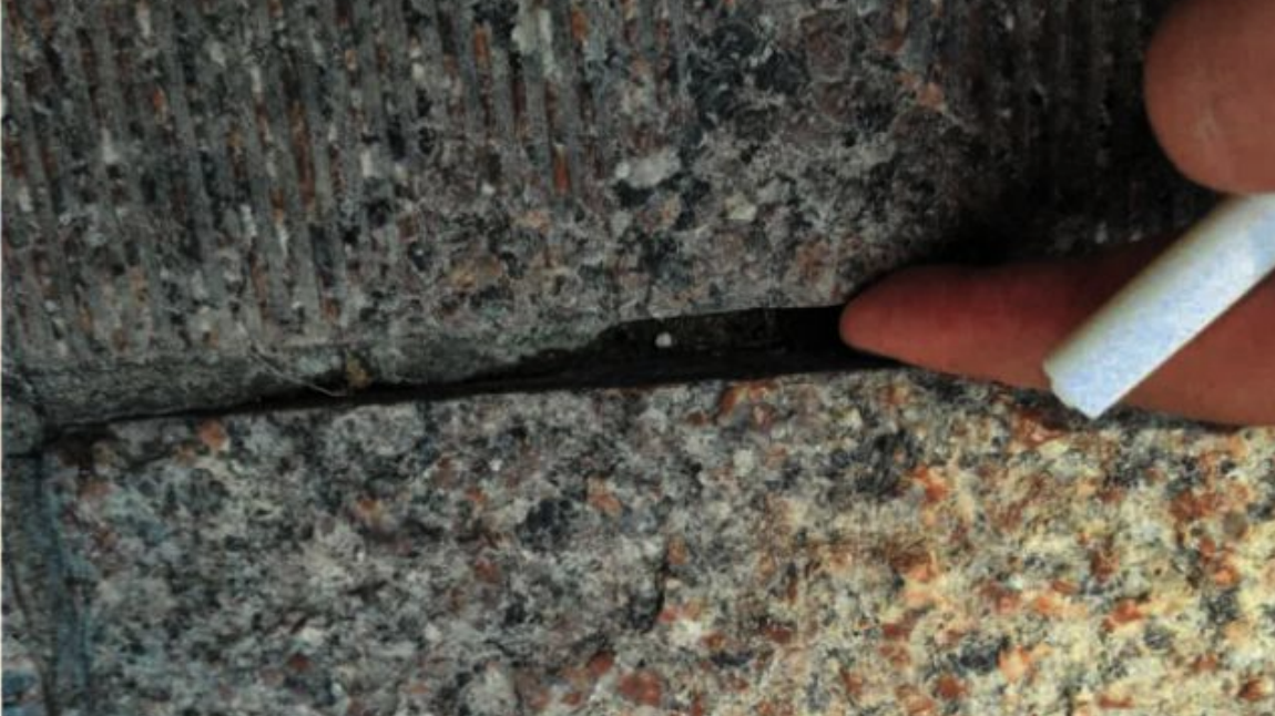 | 사건 당시 A씨의 하이힐이 빠진 호텔 현관 앞 보도블록 틈. [대한민국 법원 사법정보공개포털] |
