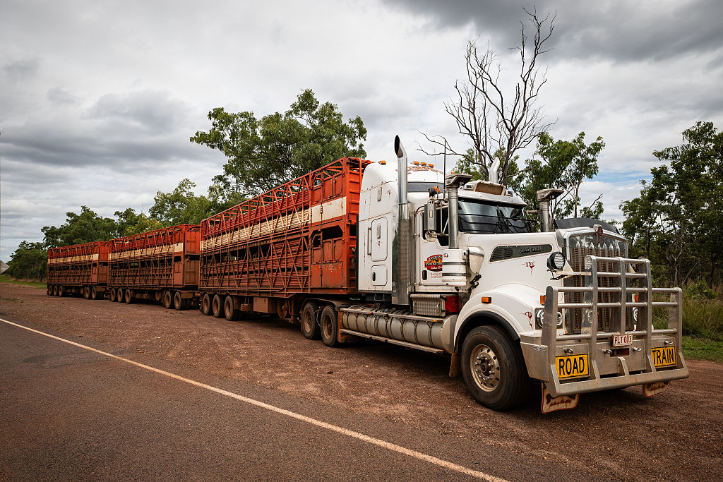 | 지난해 4월 호주 캐서린과 다윈 사이 도로 위를 달리는 로드 트레인의 모습. 호주의 육상 수송을 담당하는 로드 트레인도 급등하는 경유 가격을 견디지 못해 운송 횟수를 줄이는 등 고육책을 강구하고 있다.[게티이미지] |