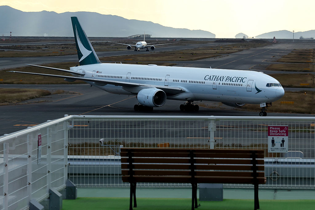 | 지난해 12월 일본 오사카 간사이 국제공항에 정박한 캐세이퍼시픽 여객기의 모습. 캐세이퍼시픽은 항공유 가격 급등의 여파로, 오는 6월말까지 항공편을 감축하기로 했다.[게티이미지] |