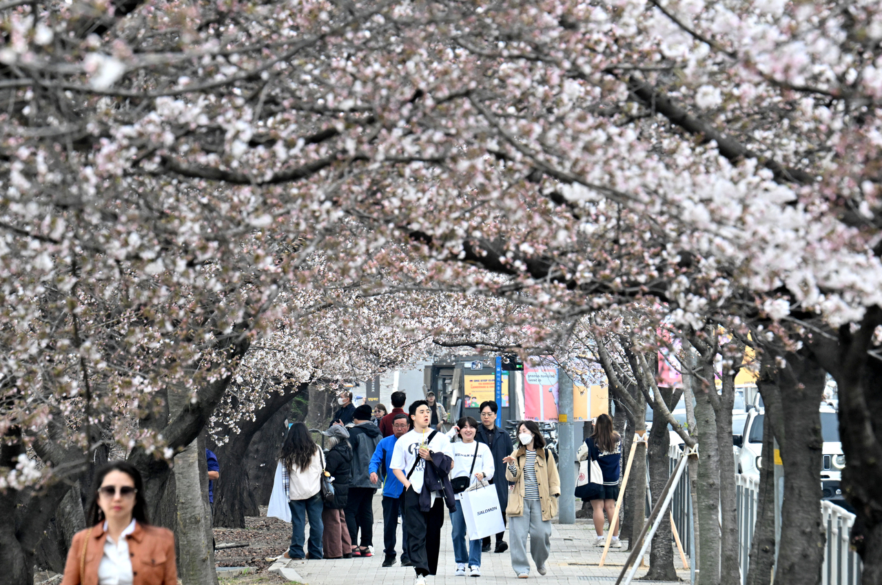 | 서울 여의도 윤중로에 벚꽃이 핀 모습. 임세준 기자 |