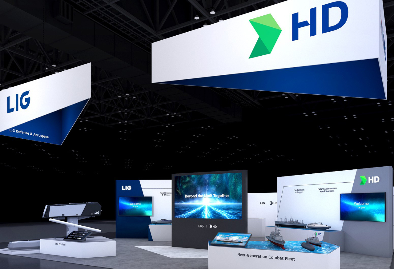HD현대중공업은 전 세계 57개국 430여 개 방산기업이 참가하는 이번 전시회에 LIG 디펜스&에어로스페이스(LIG D&A)와 함께 150㎡ 규모의 공동 전시관을 마련했다.