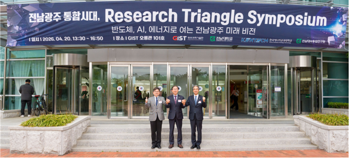 광주과학기술원(GIST)은 20일 전남대학교, 한국에너지공과대학교(KENTECH)와 함께 ‘전남광주 통합시대, 리서치 트라이앵글 심포지엄’을 개최, 3개 대학 간 연구 협력 기반을 강화하며 ‘한국형 리서치 트라이앵글’ 구축에 본격 시동을 걸었다고 밝혔다.