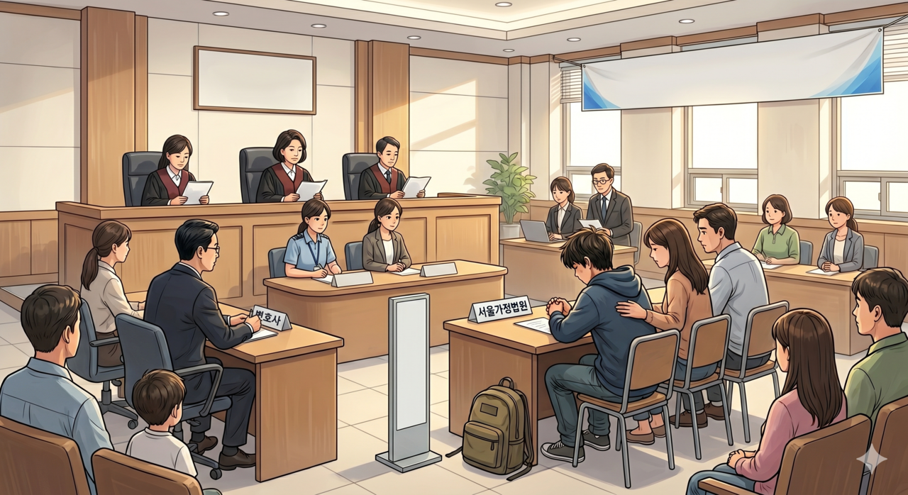 | 법원 소년 재판을 묘사한 이미지. [제미나이로 제작] |